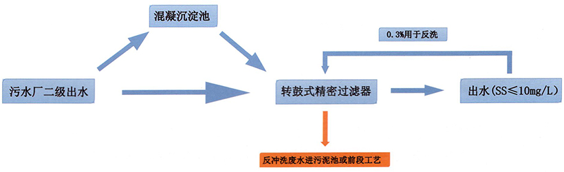 從表格數(shù)據(jù)可以看到,一級(jí)B提高到一級(jí)A,SS的高允許排放濃度從20mg/L降低到了10mg/L。這是轉(zhuǎn)鼓式精密過濾器所應(yīng)對(duì)的主要領(lǐng)域。